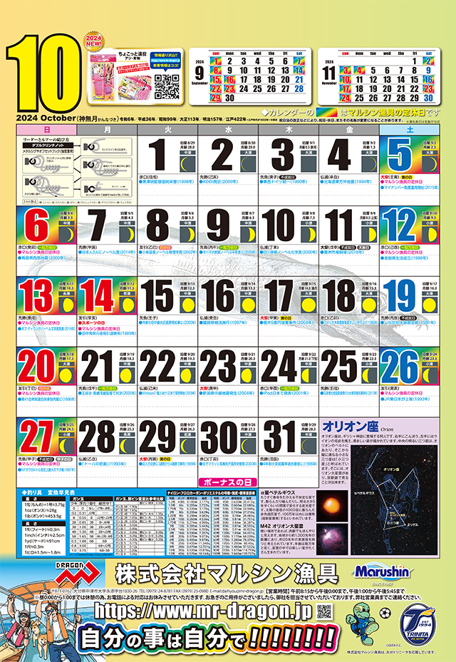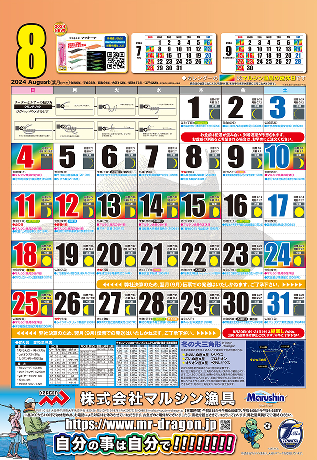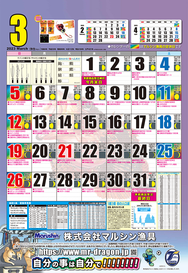 新着商品情報 当社はソルトウォーター・釣用品をメインに問屋様・小売店様への卸専門メーカーです。個人のお客様への卸売、通販等は行っておりません。 至高のドロッパーエギ(しこうのドロッパーエギ) / 1サイズ・24カラー ケンサキイカやヤリイカ、スルメイカなどのツツイカ狙いに、Dragon史上最高の … 海釣りイカエギ・スッテ 至高のエギ(しこうのエギ)/ 3サイズ・7カラー 新しい基準のスタンダードエギ!! [ショアエギング専用設計]【至高のエギ】 海釣りイカエギ・スッテ疑似餌 リトルシャン / 4サイズ・3カラー ”小イカには専用小エギ!” 【Little Schoen(リトルシャン)】 海釣りイカエギ・スッテ疑似餌 ラトルスネーカー / 3サイズ・5カラー ”ラトルの威力はあなどれない!” 超小型!音でアピール!【ラトルスネーカー】 海釣りイカエギ・スッテ 新着商品一覧を見る 新着トピックス お知らせ 年末配送スケジュールのお知らせ 2025.12.1 詳しく見る マルシンニュース 弊社年末年始休暇日のお知らせ 2025.11.27 詳しく見る マルシンニュース 棚卸しによる出荷停止のお知らせ 2025.8.7 詳しく見る マルシンニュース 夏季(盆前)発送スケジュールのお知らせ 2025.7.8 詳しく見る 新着情報一覧を見る マルシンブランド 生態の観察から天候・気象状況の分析など、”釣り”とは究極のNature Game! ステンコマセカゴ、円錐ウキ、堤防サビキ・船サビキ、イカエギにメタルジグ、タコ掛けなど… これらの道具を使い、魚との知恵比べに挑むアングラー達を支えるために、 Dragon World Fishing Gearは存在します。 家族や友人とのコミュニケーションの一つとして、 また、釣りをLIFE STYLEの一部として謳歌するエキスパートへ マルシン2026年度カレンダー 画像をクリックするとPDFカレンダーが表示されます 壁紙ダウンロード スマホ用 2514px × 5437px 個人利用のみ可能です。画像の加工や修正・転載・複製・転送・販売は禁止します。