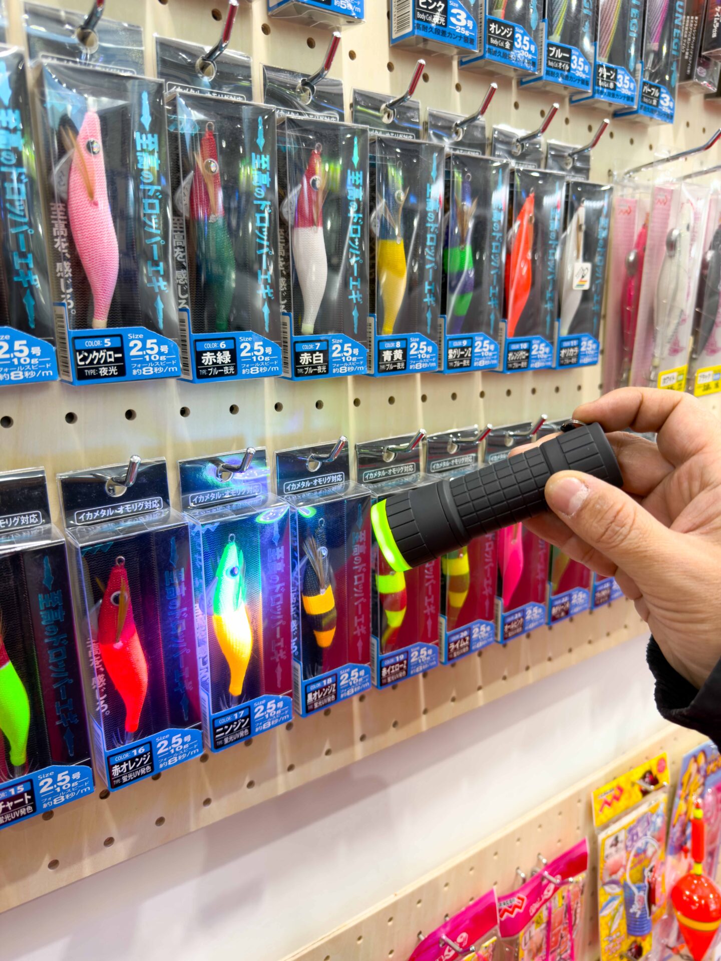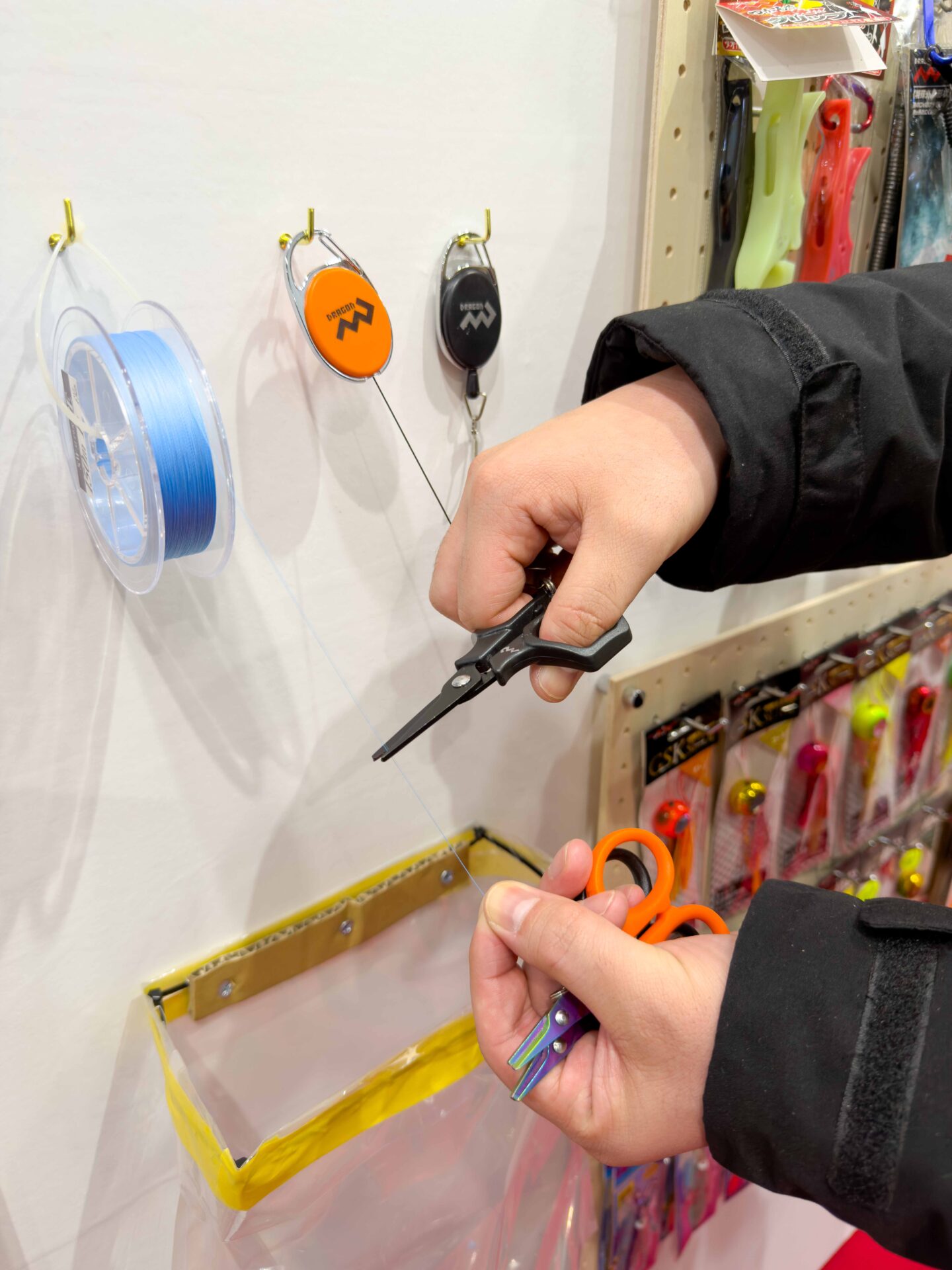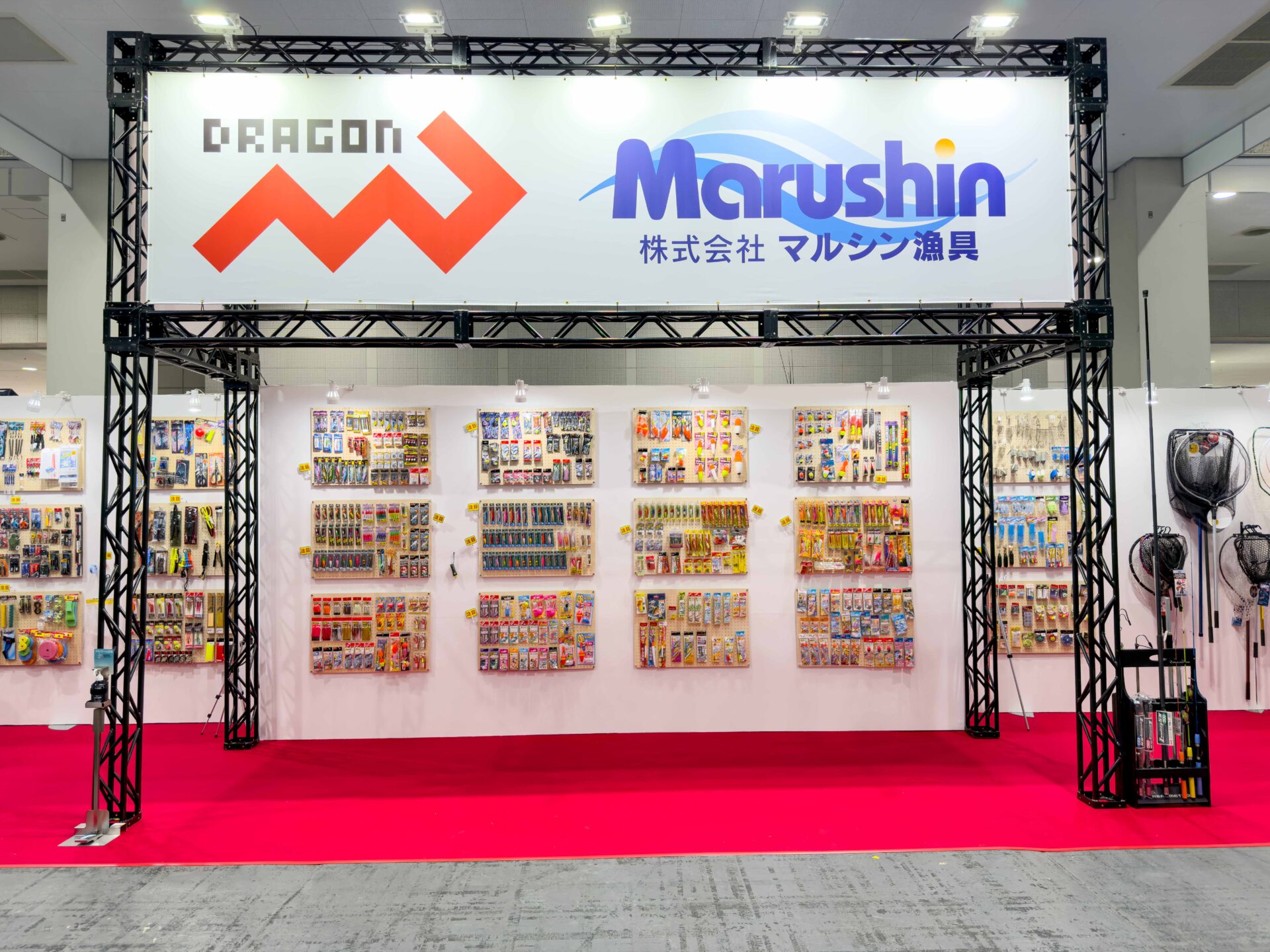 新製品や人気の製品が一同展示のマルシン漁具ブースは、