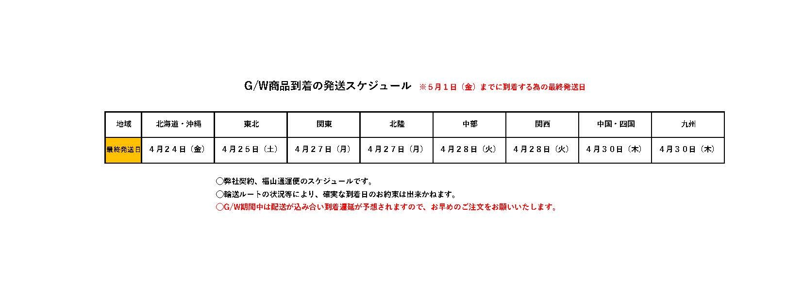 GW(ゴールデンウィーク)前 発送スケジュールのお知らせ