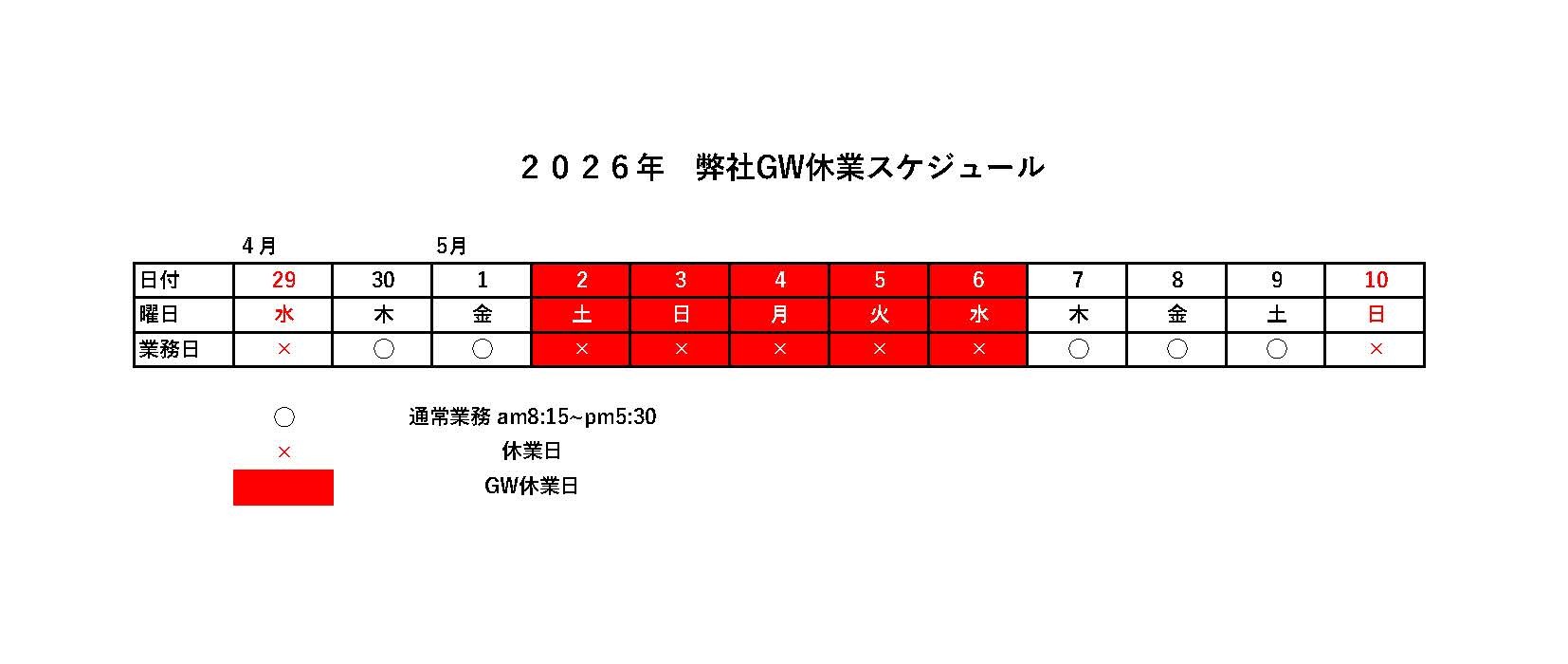 弊社GW休業日のお知らせです。