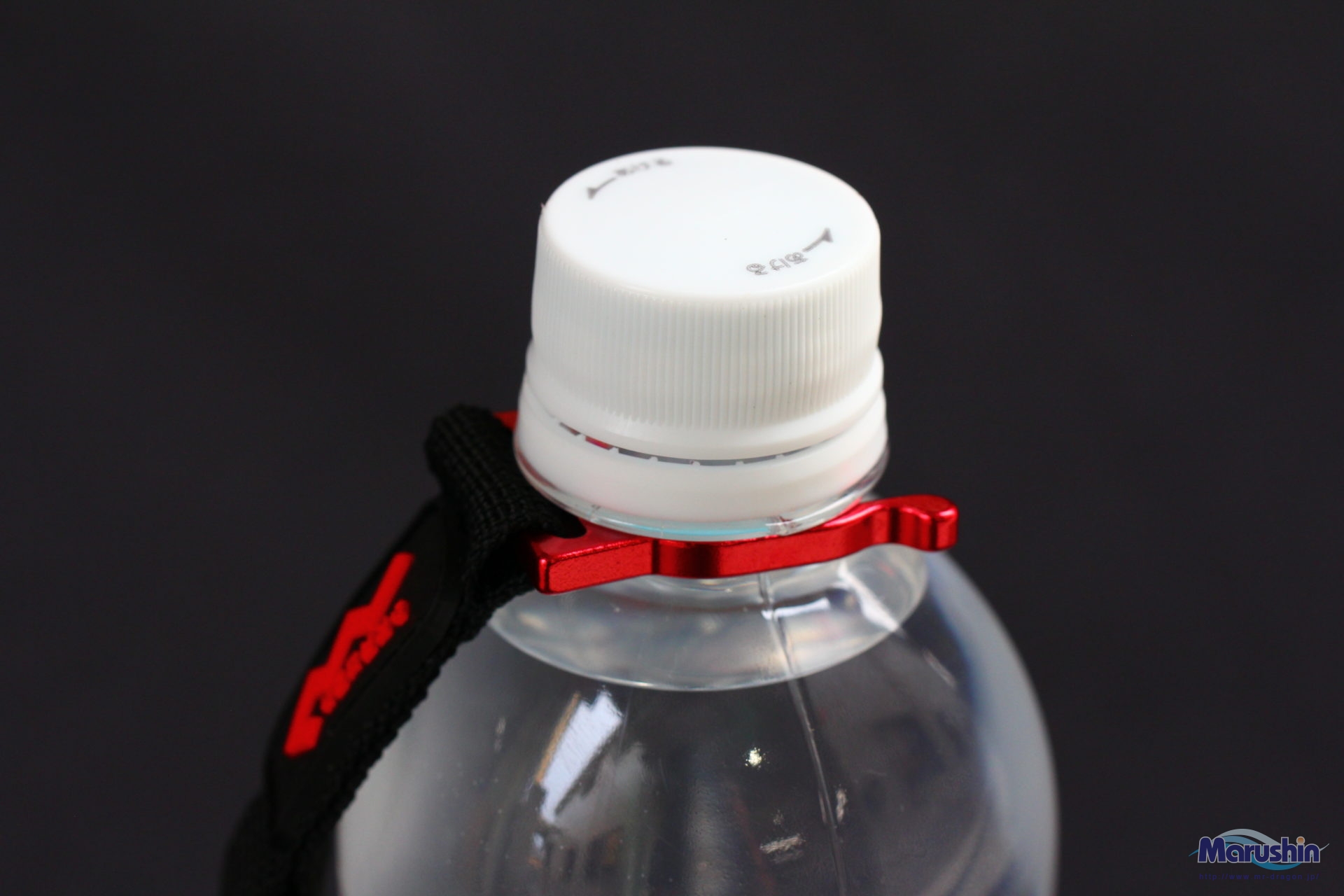 ペットボトルのキャップ根本を挟み込む形で固定できます。