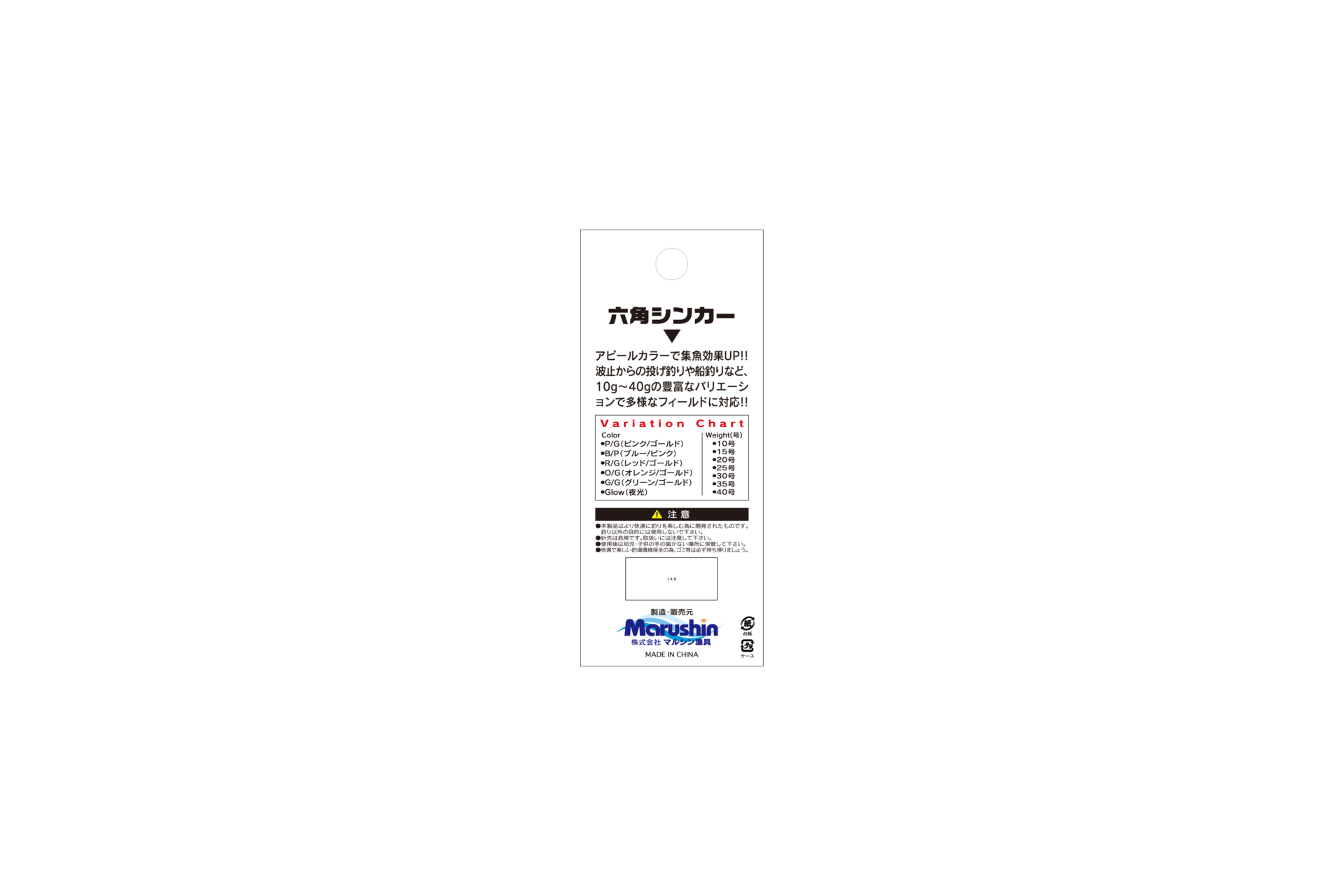 | 4535090098584 | 六角シンカー夜光 | 20号 |