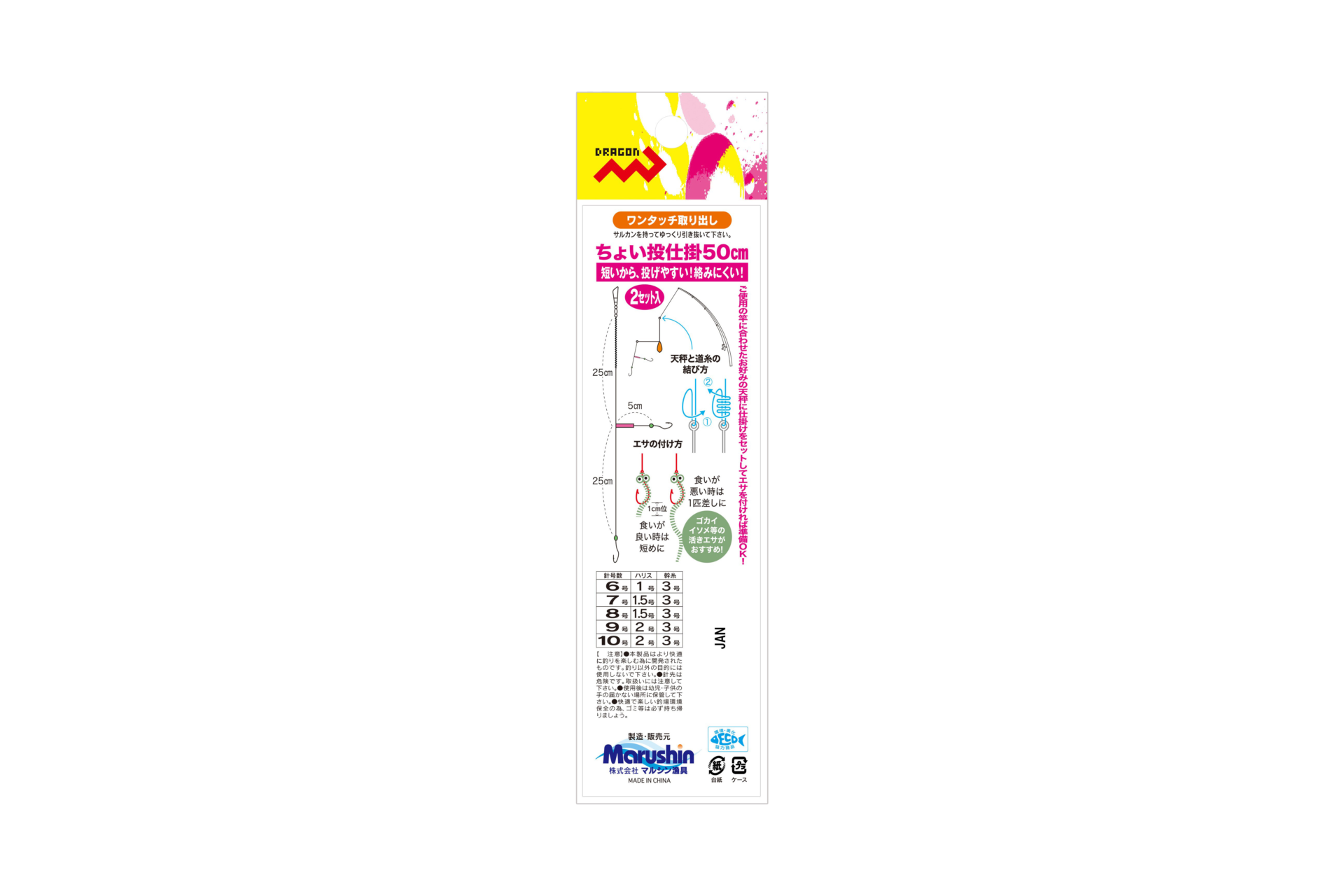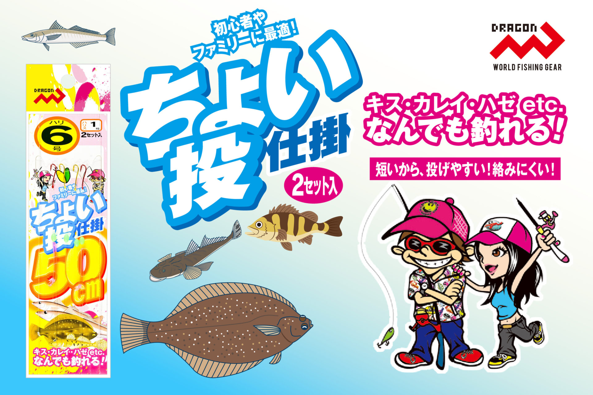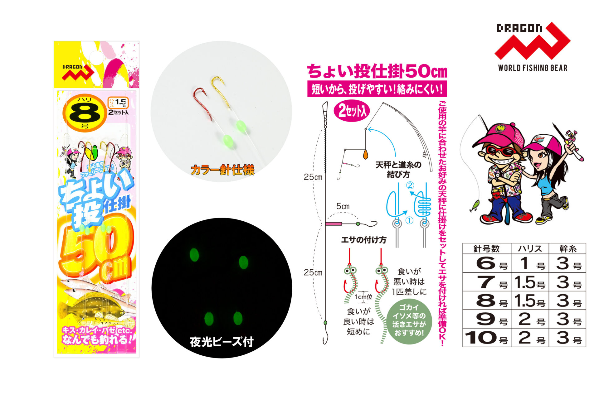 短い仕掛け仕様で、「投げやすい!絡みにくい!」Dragon【ちょい投仕掛50cm2本針】は、