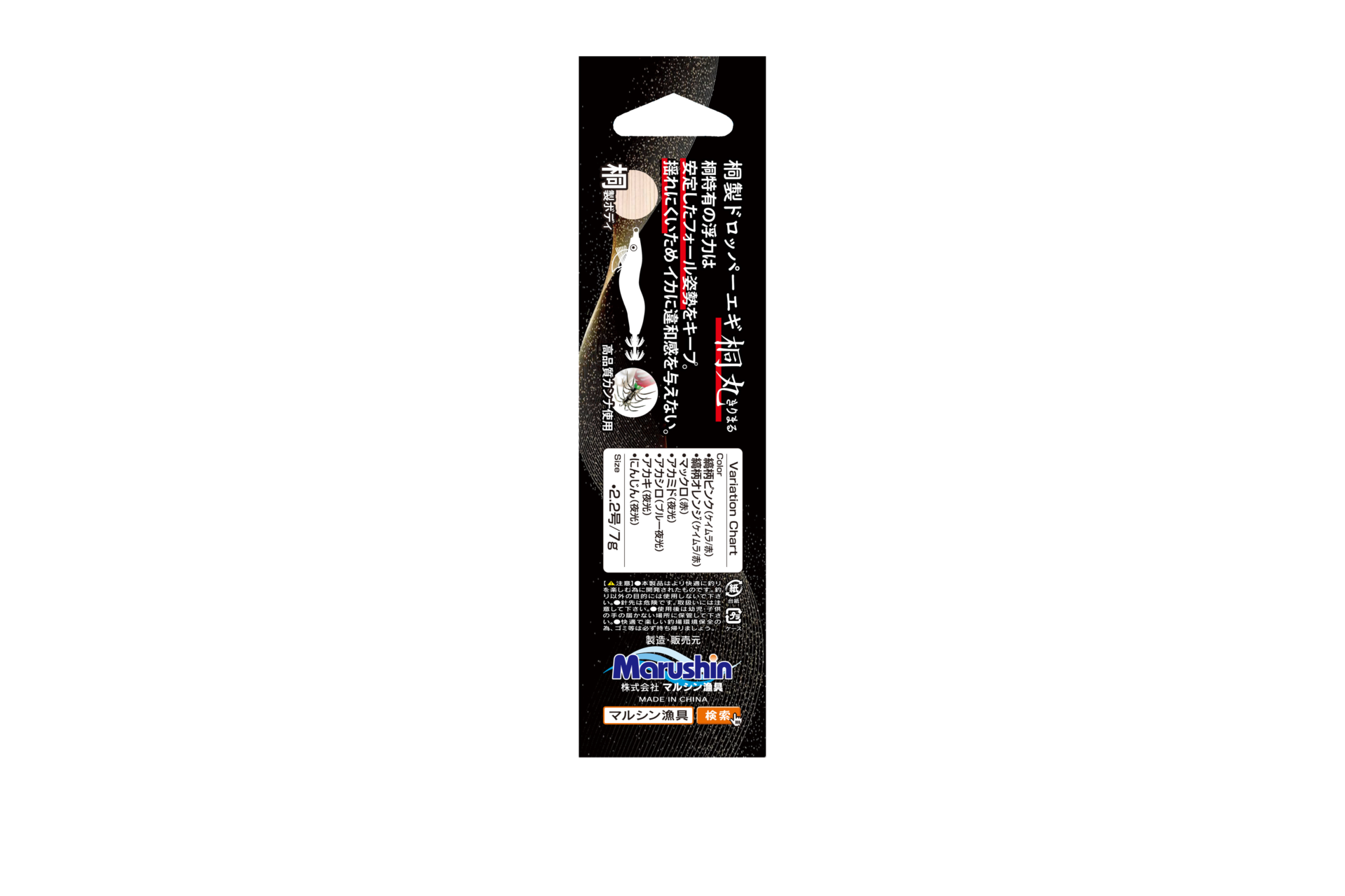 | 4535090176923 | 桐製ドロッパーエギ 桐丸 マックロ | 2.2号 |
