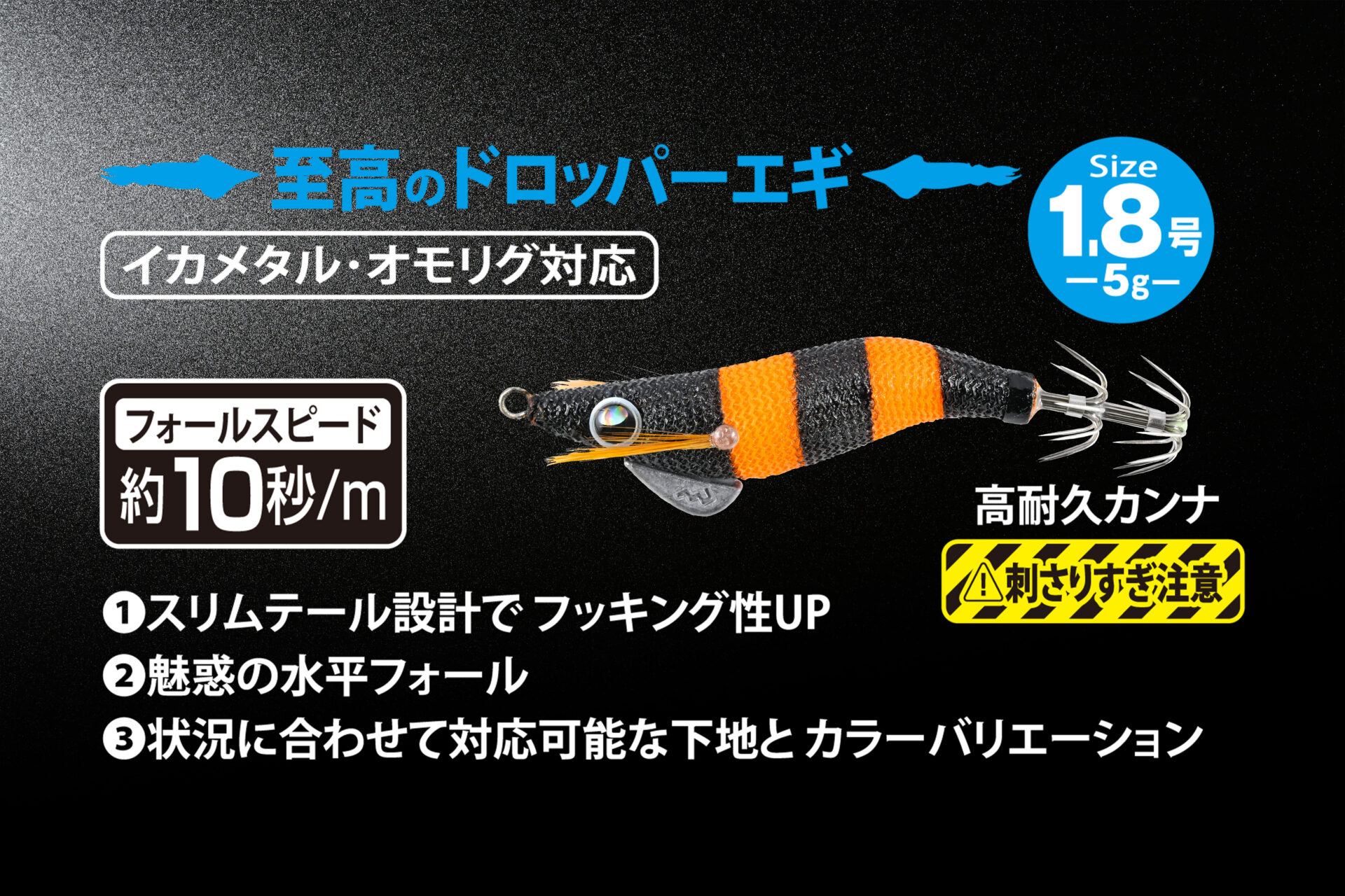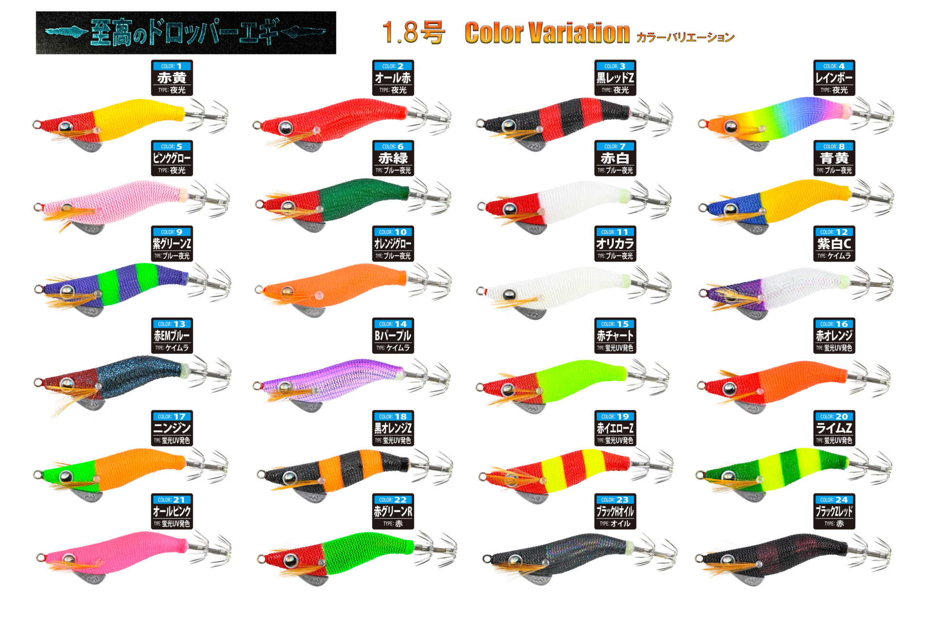 | 4535090180388 | 至高のドロッパーエギ 18黒オレンジZ | 1.8号 |