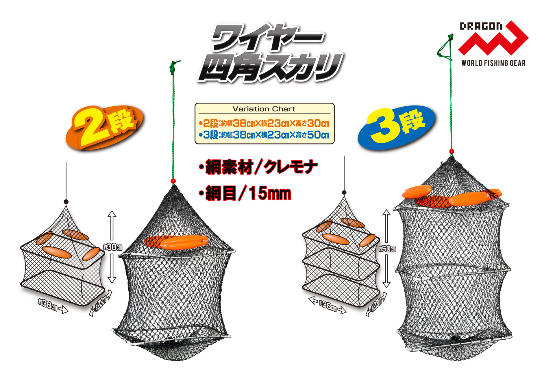 そんな釣りファンのご要望にお答えして、【ワイヤー四角スカリ 2段・3段】が発売となり